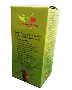 All our wild harvested herbs are gathered from their natural environment from experienced collectors. 100% NATURAL, CAFFEINE FREE & NO PRESERVATIVES, a general health improvement for a Super Life!! Superlife Herbs are registered with CIPRO and have been tested and approved by the Medical Research Council of South Africa.